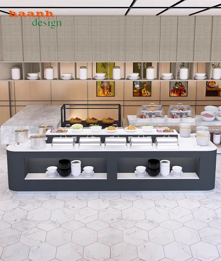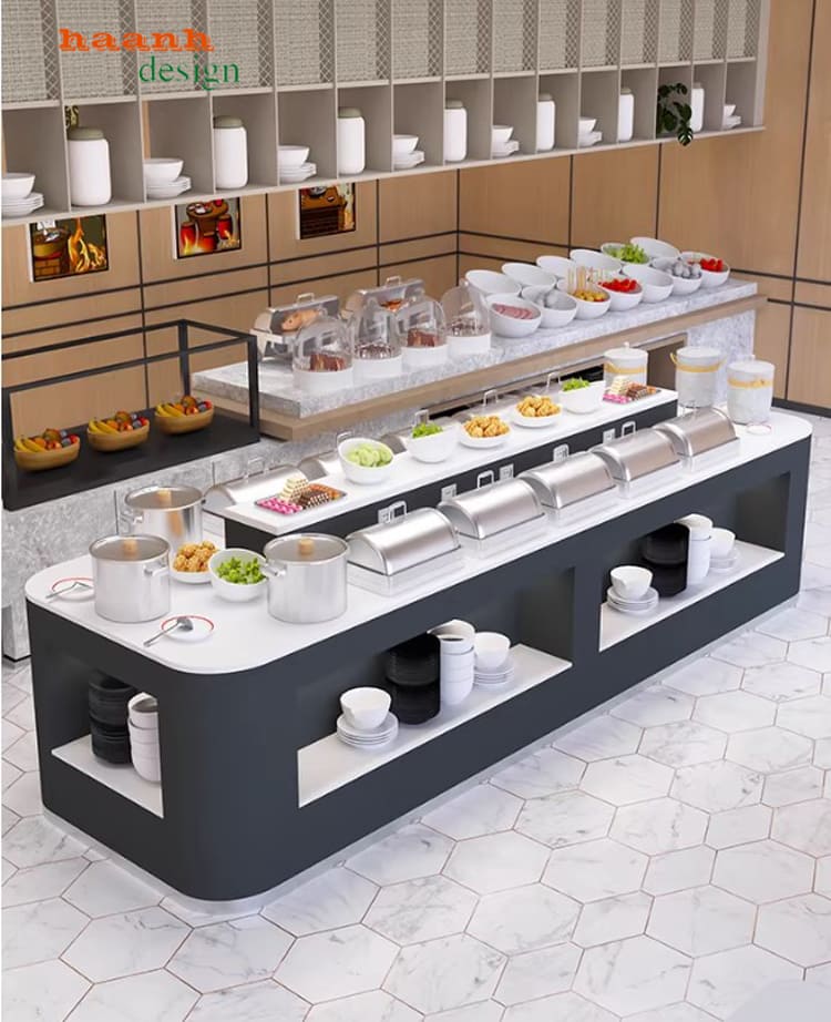 Các mẫu bàn buffet khách sạn tiện dụng thường được thiết kế theo tiêu chuẩn nhà hàng cao cấp.