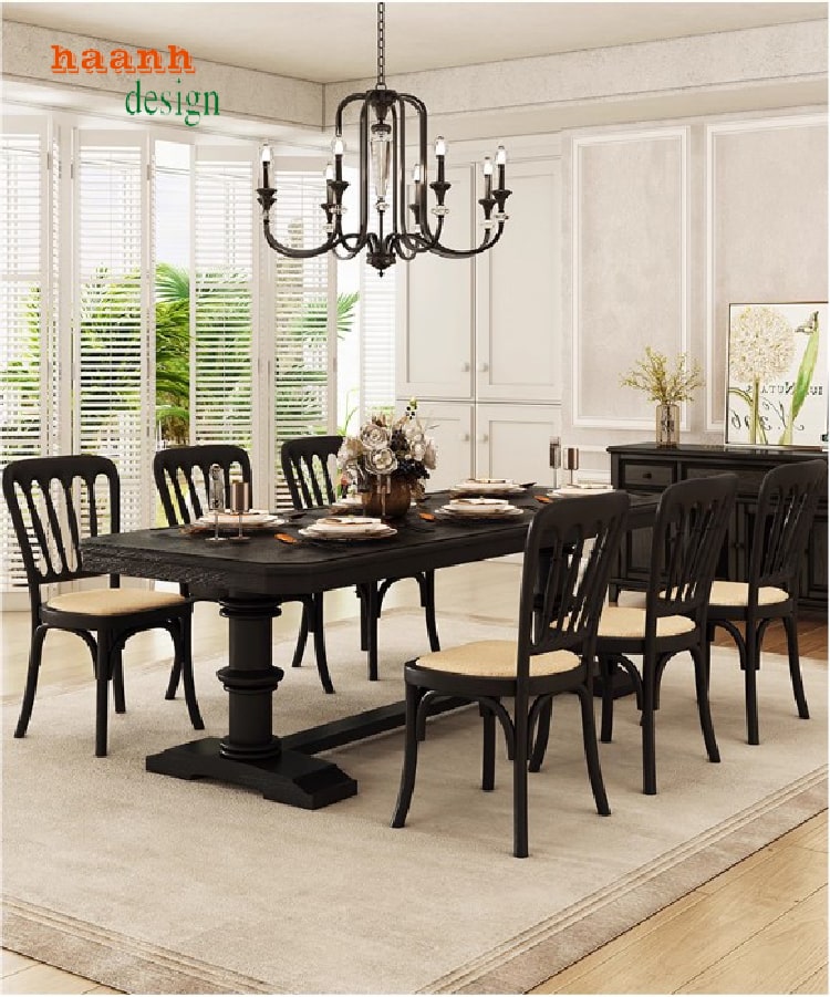 Dù bạn theo đuổi phong cách cổ điển hay hiện đại, bộ bàn ghế ăn phong cách châu Âu vẫn là lựa chọn lý tưởng. Kiểu dáng thanh lịch cùng màu sắc trang nhã tạo điểm nhấn nổi bật mà không làm rối không gian.