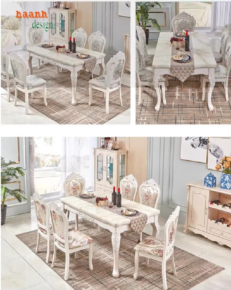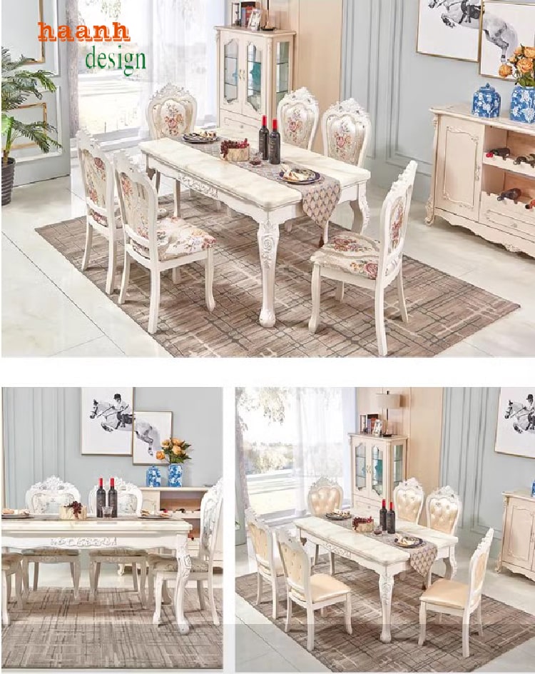 Dưới đây là một số mẫu bàn ghế ăn tân cổ điển nổi bật, giúp bạn có thêm nhiều sự lựa chọn cho không gian nội thất của mình.