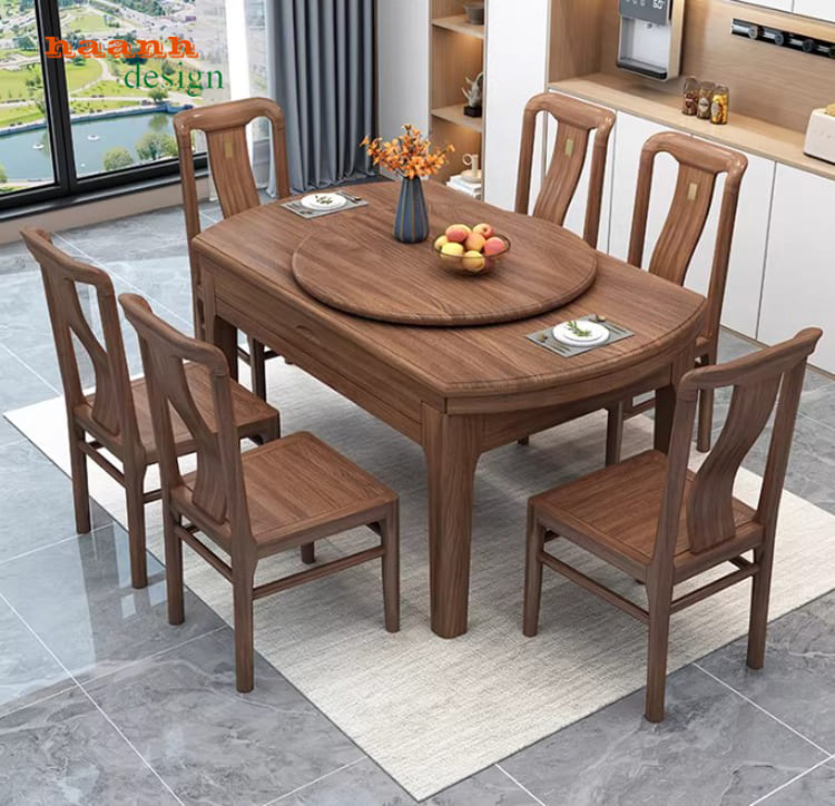 Bộ bàn ghế ăn mở rộng hoàn chỉnh cho gia đình đông người