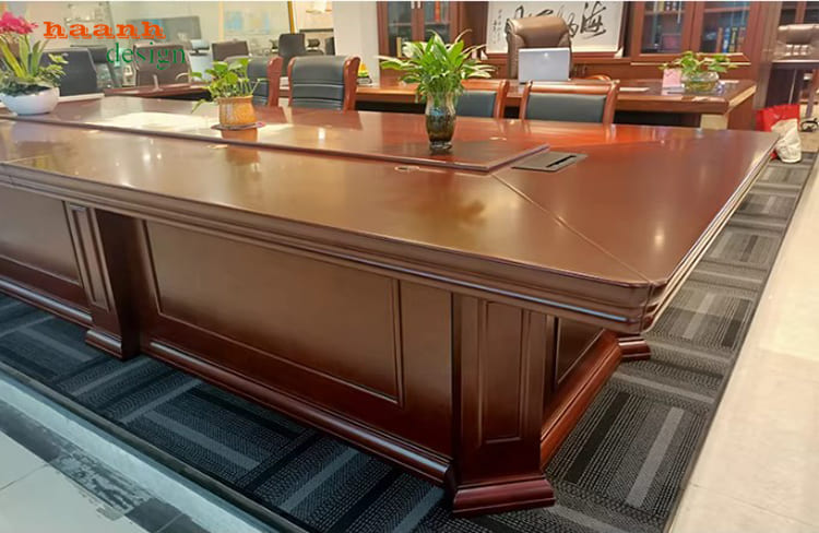 Nhờ lớp sơn cao cấp, bàn hội nghị luôn giữ được vẻ đẹp như mới dù sử dụng trong thời gian dài.