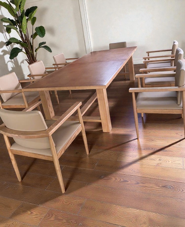 Từ công ty vừa và nhỏ đến tập đoàn lớn, bàn ghế họp gỗ sồi đều đáp ứng tốt nhu cầu sử dụng nhờ khả năng thiết kế theo kích thước yêu cầu.