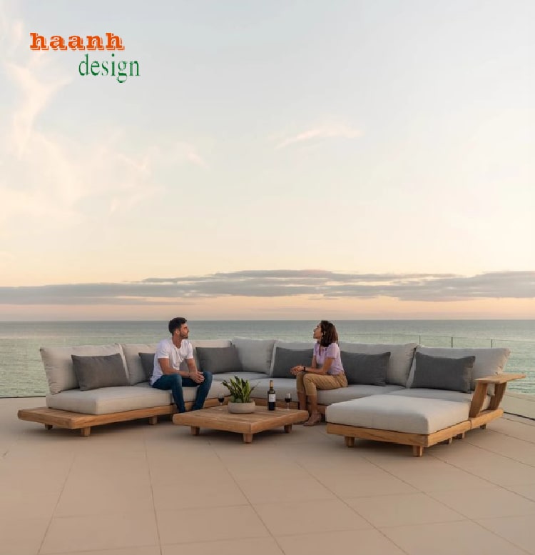 Không gian thư giãn lý tưởng ngoài trời với bộ sofa gỗ Teak đẳng cấp.