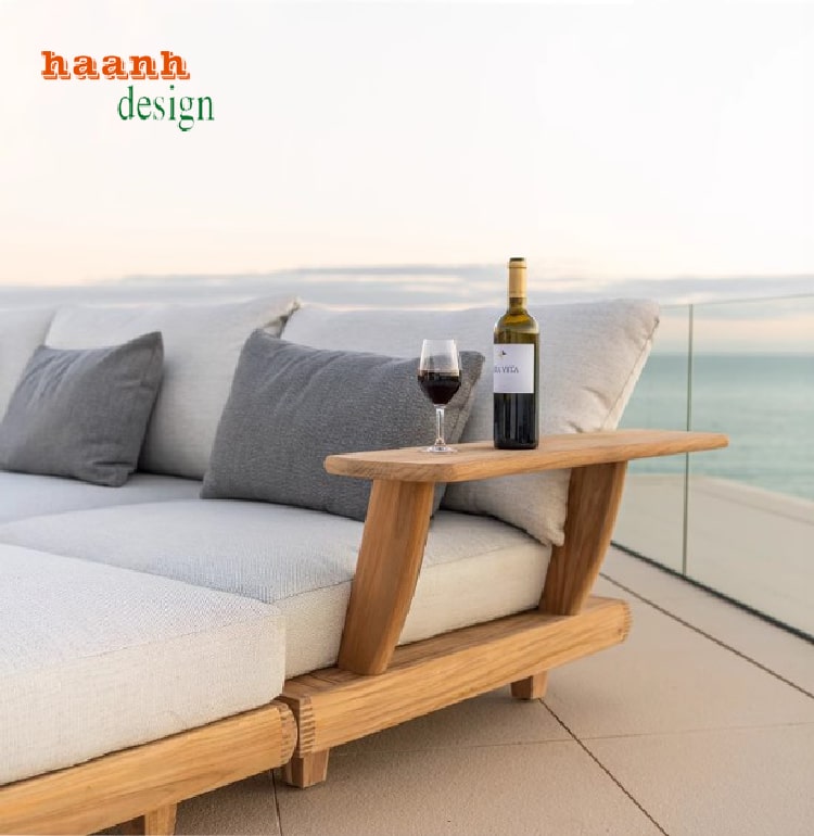 Bộ bàn ghế sofa ngoài trời làm từ gỗ Teak nhập khẩu Myanmar – sang trọng, bền bỉ theo thời gian.