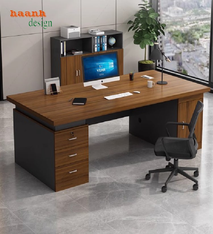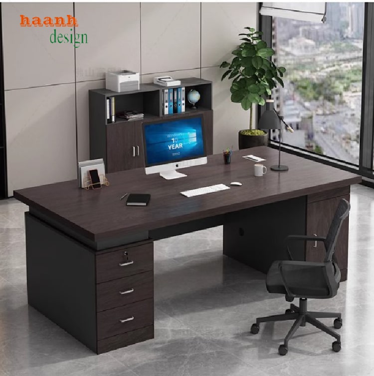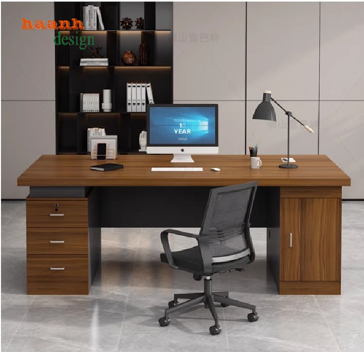 Bên cạnh đó, bàn làm việc được thiết kế thêm hộc tủ phụ, bàn phụ (nếu cần) giúp tăng diện tích sử dụng mà vẫn đảm bảo sự gọn gàng và chuyên nghiệp.
