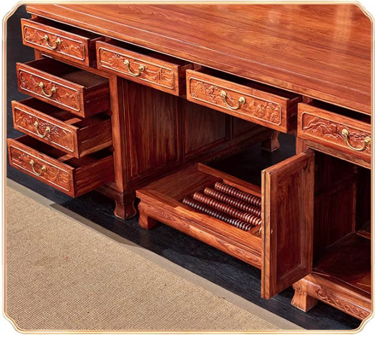 Điểm nhấn nổi bật của mẫu bàn làm việc gỗ phong cách Trung Hoa chính là: