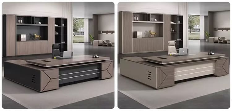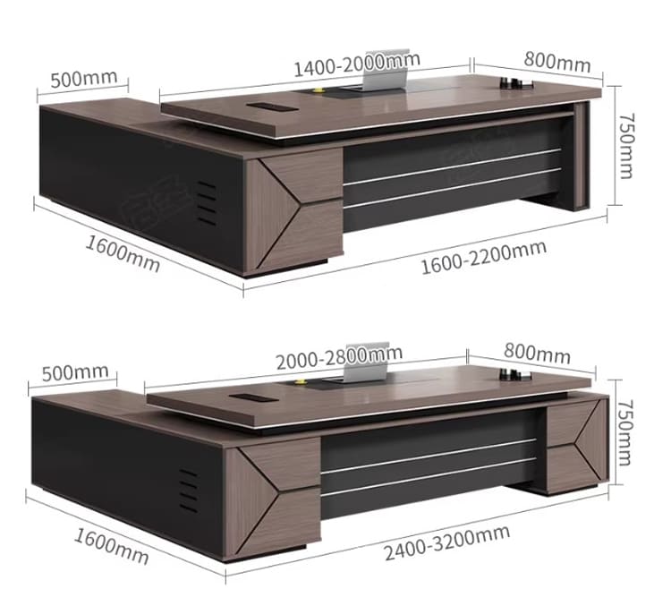 Ưu điểm của bàn làm việc lãnh đạo gỗ công nghiệp là có thể sản xuất theo kích thước yêu cầu.