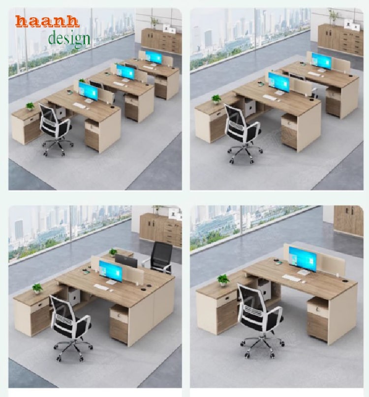 Tùy thuộc vào nhu cầu và diện tích mặt bằng, bàn nhân viên văn phòng có thể được tùy biến về kích thước, số chỗ ngồi và màu sắc. Điều này giúp doanh nghiệp dễ dàng xây dựng không gian làm việc đồng bộ, thẩm mỹ và chuyên nghiệp.