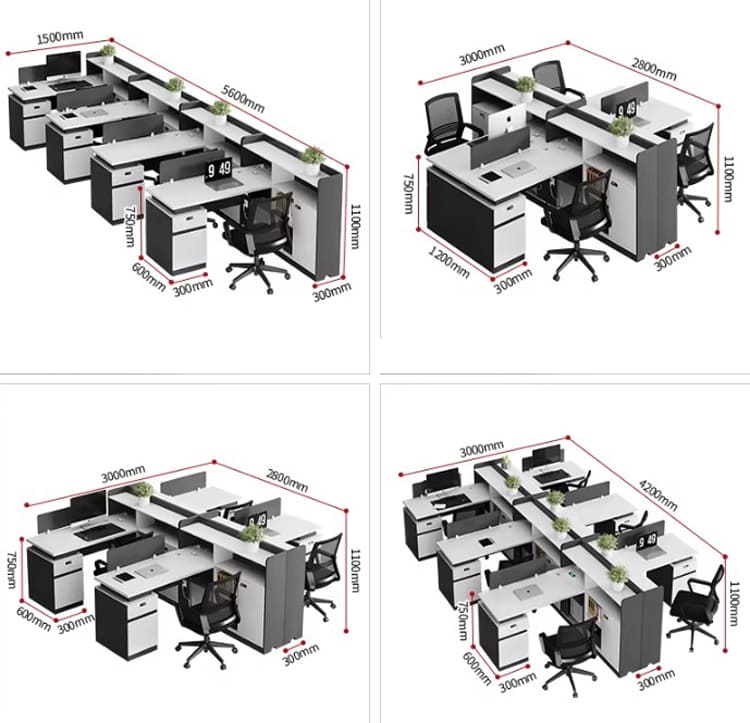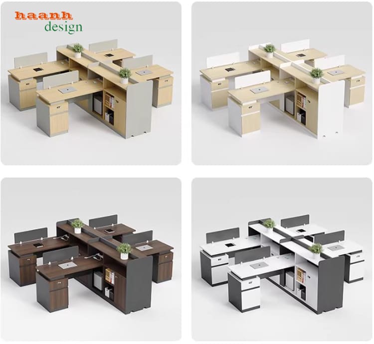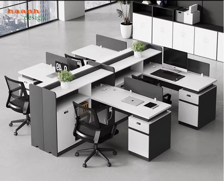 Mẫu bàn nhân viên văn phòng đẹp bố trí theo cụm làm việc hiện đại