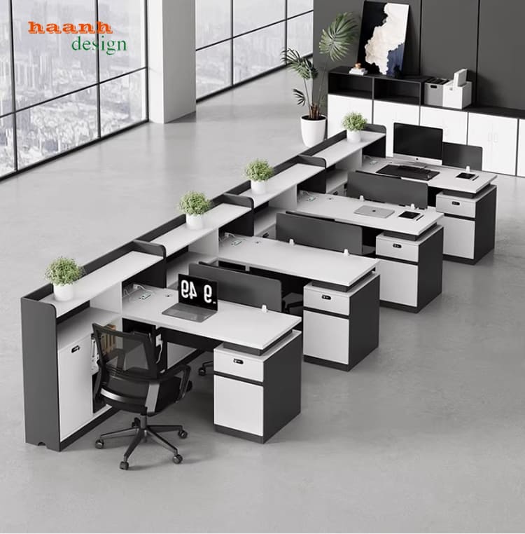 Bàn làm việc nhân viên văn phòng thiết kế hiện đại cho không gian doanh nghiệp