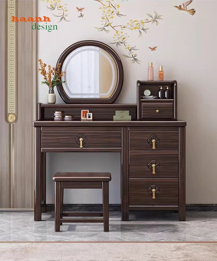 Sự sang trọng của bàn phấn gỗ giúp không gian trở nên tinh tế hơn.