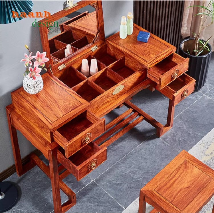 Nếu bạn đang tìm kiếm một mẫu bàn phấn đẹp, vừa mang tính tiện dụng, vừa thể hiện phong cách sang trọng cổ điển, thì chiếc bàn phấn trang điểm gỗ hương phong cách giả cổ Trung Quốc chính là lựa chọn hoàn hảo. Đây là sản phẩm kết hợp giữa giá trị thẩm mỹ, độ bền bỉ và sự tiện ích trong sử dụng.