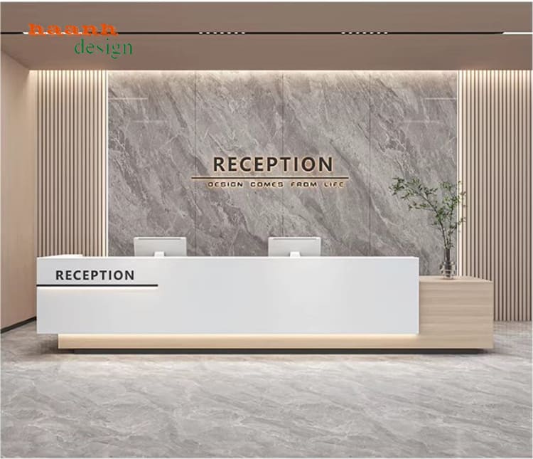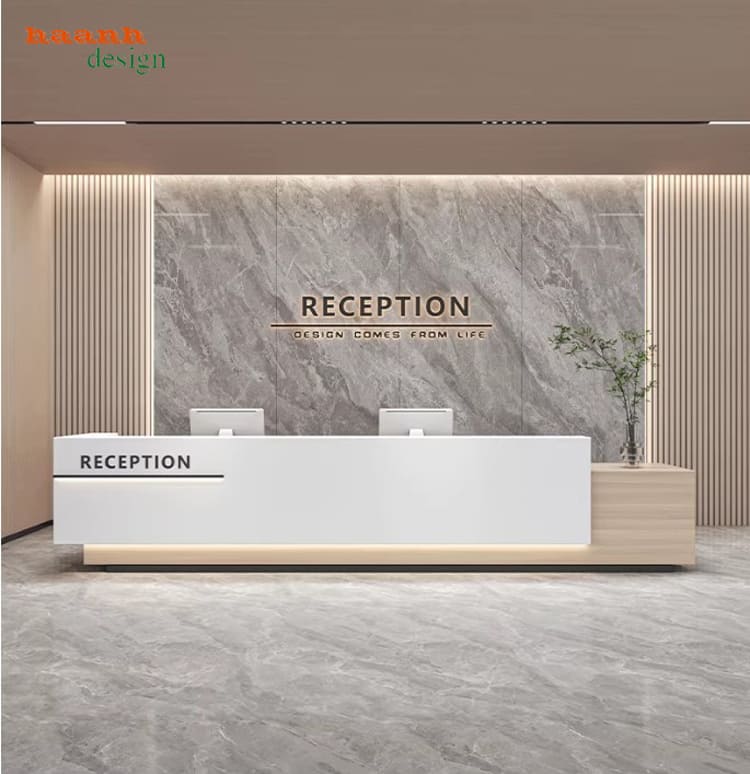 Thiết kế quầy tiếp tân phù hợp không gian văn phòng chuyên nghiệp.