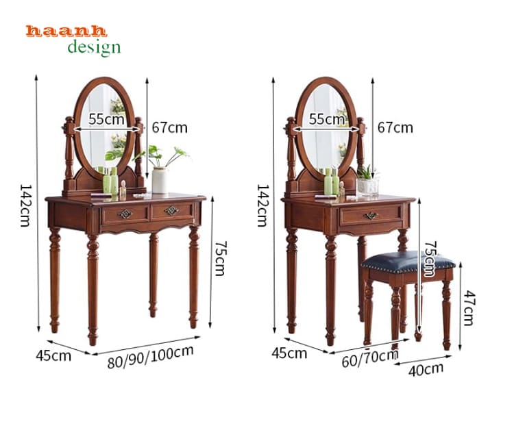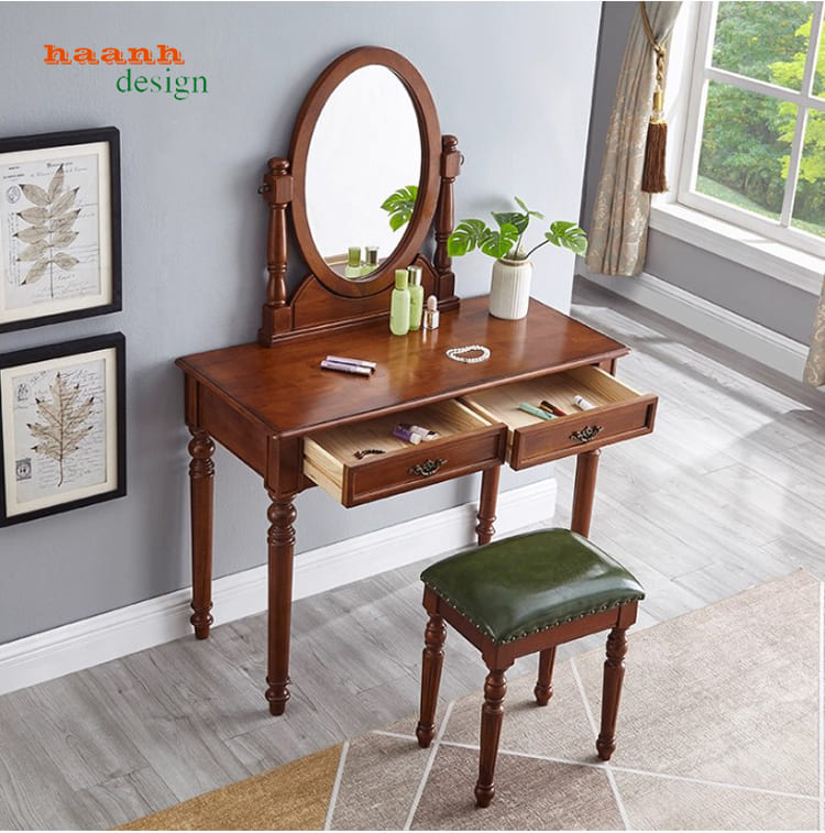 Sự kết hợp giữa nghệ thuật thiết kế châu Âu tinh tế, chất liệu gỗ quý và kỹ thuật hoàn thiện cao cấp đã tạo nên mẫu bàn trang điểm tân cổ điển vượt thời gian. Thiết kế được chau chuốt từng chi tiết, mang đến vẻ đẹp mềm mại, sang trọng nhưng vẫn đảm bảo công năng tiện ích cho gia chủ.