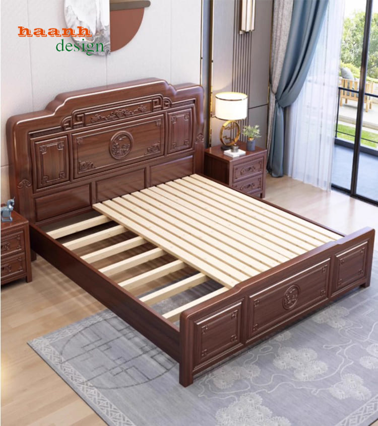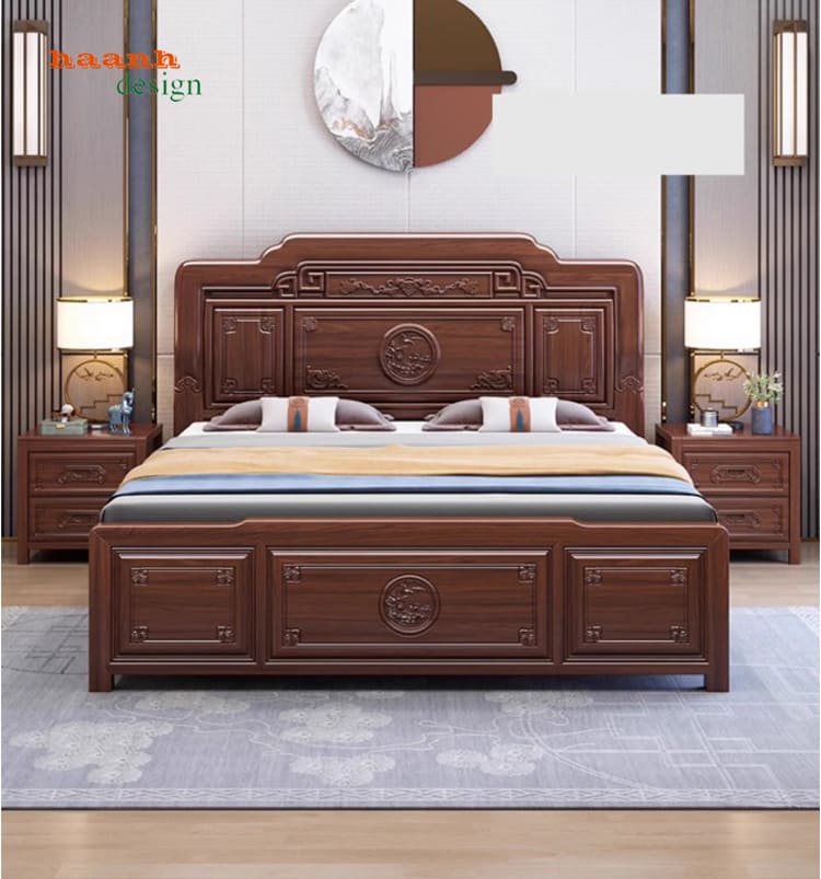 Điểm nhấn nổi bật của giường ngủ gỗ tự nhiên cao cấp chính là phong cách Trung Hoa cổ điển:
