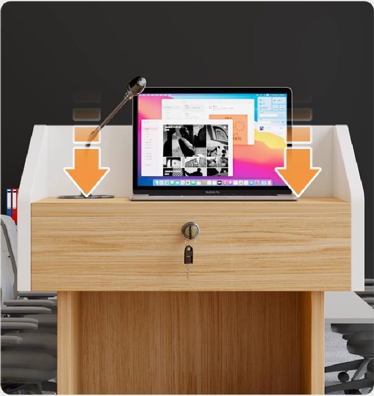 Nhờ cấu tạo từ MDF phủ Melamine, bục phát biểu cao cấp không bị mối mọt, cong vênh như gỗ tự nhiên. Điều này giúp tiết kiệm chi phí bảo trì, thay thế.