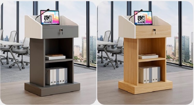 Thiết kế bục gỗ phát biểu với ngăn để tài liệu
