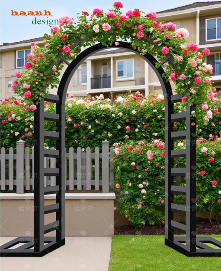 Trong các khu resort hoặc sân vườn, vòm cổng sắt đẹp được dùng làm điểm nhấn chụp ảnh, cổng chào hoặc lối đi lãng mạn. Khi kết hợp cùng cây leo hoặc đèn trang trí, cổng trở thành không gian nghệ thuật thu hút mọi ánh nhìn.