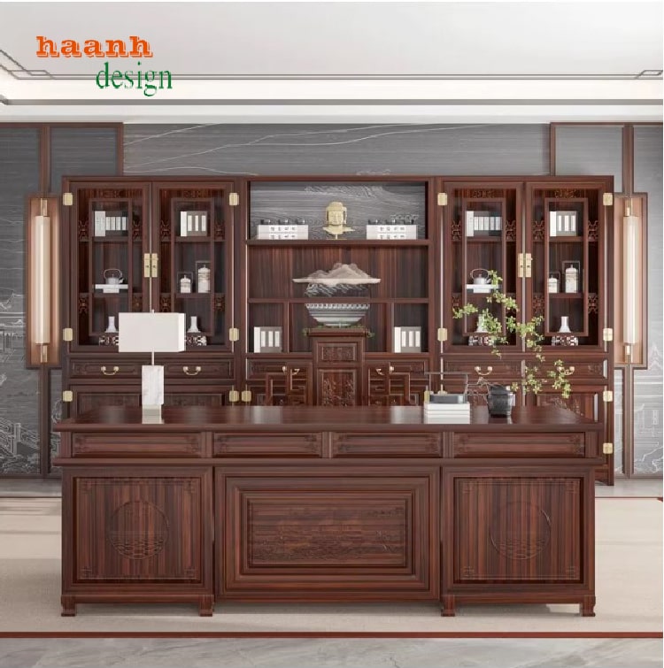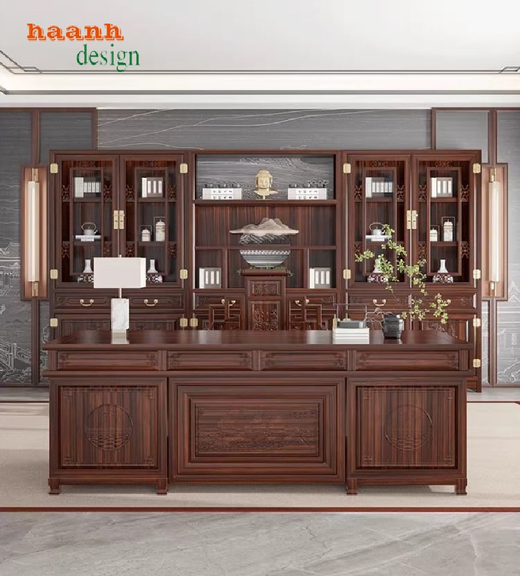Vẻ đẹp của gỗ gụ mang lại cảm giác sang trọng cho không gian làm việc, tạo ấn tượng tốt với đối tác và khách hàng.