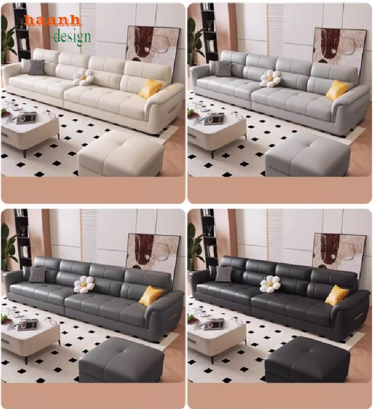 Ghế sofa phòng khách hiện đại được thiết kế tinh tế với khung gỗ sồi tự nhiên chắc chắn, mút liên doanh Việt Nhật êm ái, không lún xẹp và bọc giả da Hàn Quốc bền đẹp. Sản phẩm đa dạng kiểu dáng, màu sắc phù hợp nhiều không gian. Là lựa chọn lý tưởng cho mọi gia đình đang tìm kiếm ghế sofa đẹp, cao cấp và tiện nghi.