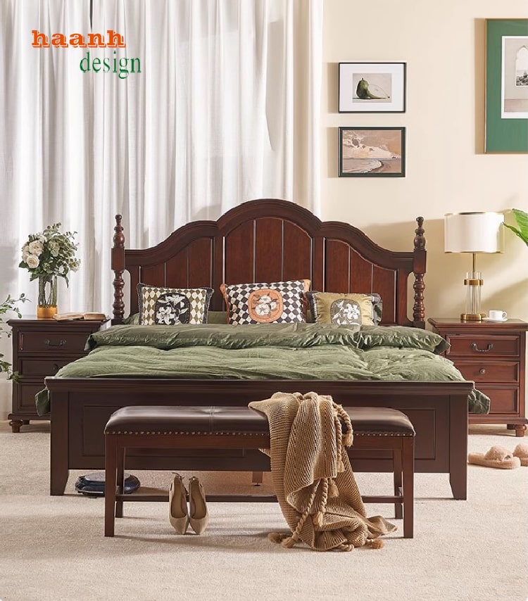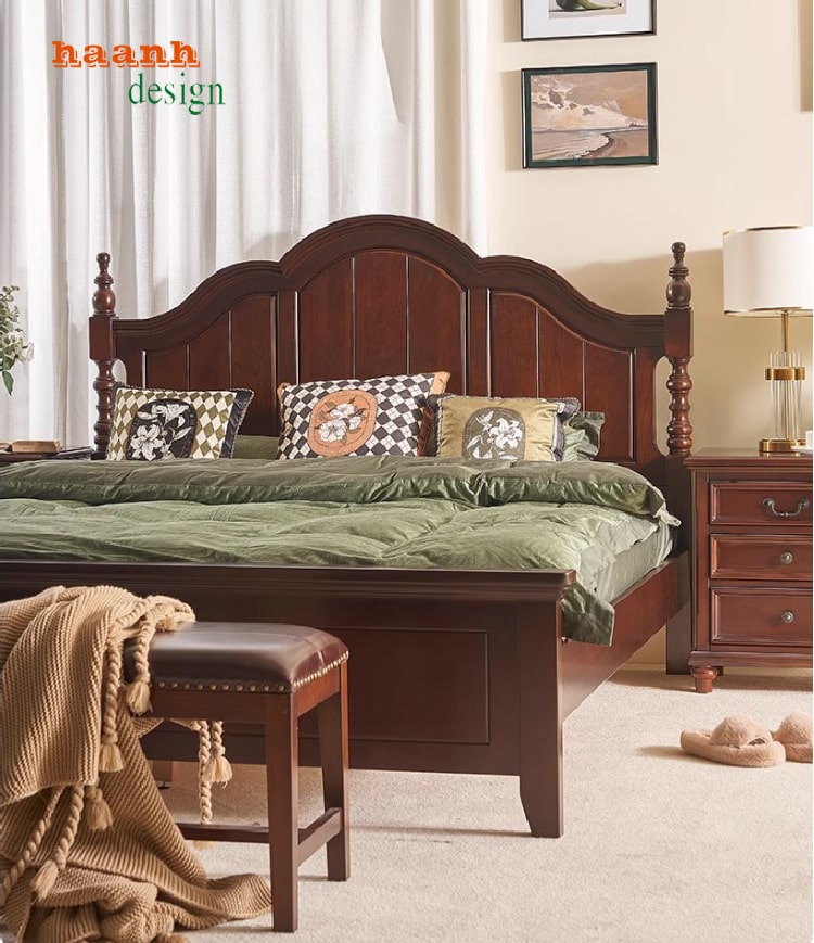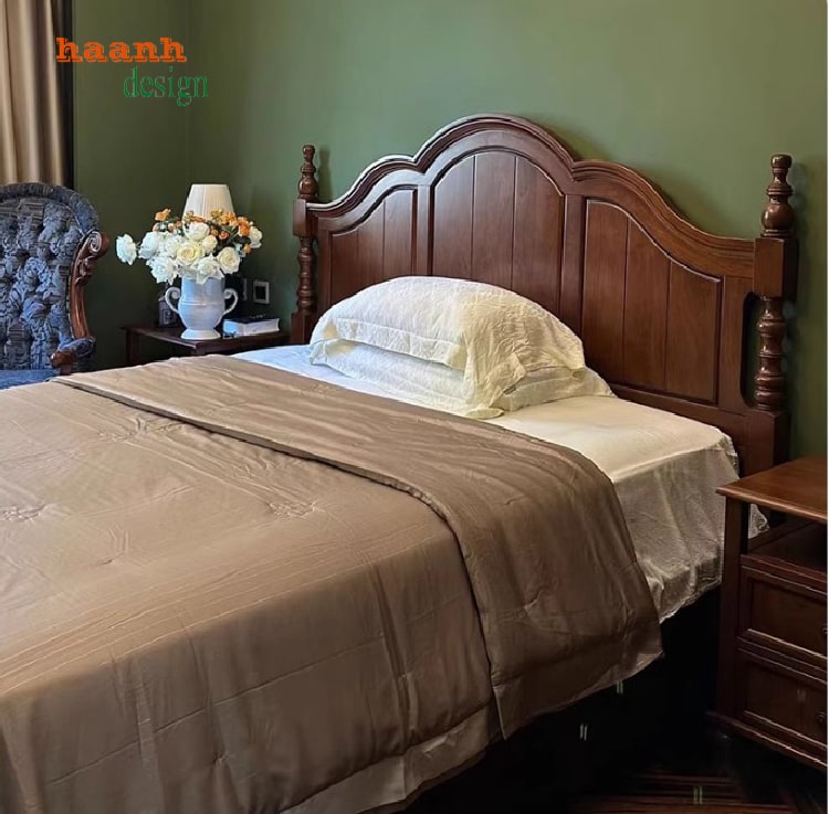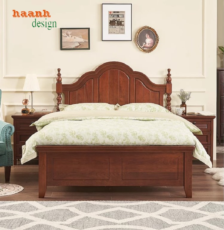 - Chất lượng cao: Được làm từ gỗ tự nhiên, giường gỗ tân cổ điển có độ bền cao, khả năng chịu lực tốt.
