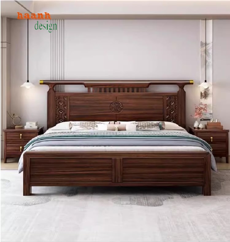Giường ngủ gỗ cao cấp được lấy cảm hứng từ phong cách nội thất Trung Hoa, thể hiện sự cân bằng, hài hòa và tinh xảo trong từng chi tiết.