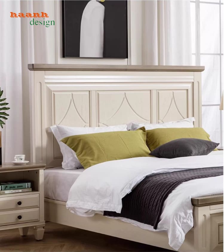 Mẫu giường tân cổ điển được chế tác từ gỗ sồi tự nhiên, mang vẻ đẹp đẳng cấp châu Âu.