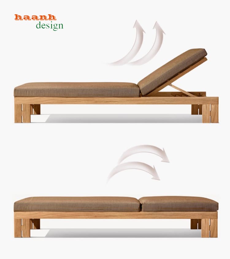 Hãy để chiếc giường tắm nắng gỗ Teak đẹp nâng tầm không gian của bạn và mang lại trải nghiệm thư giãn hoàn hảo nhất.