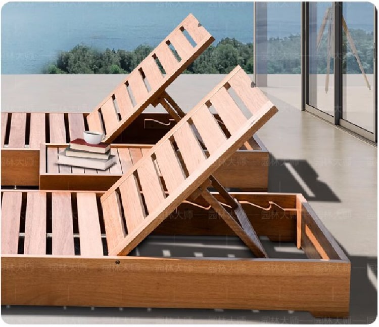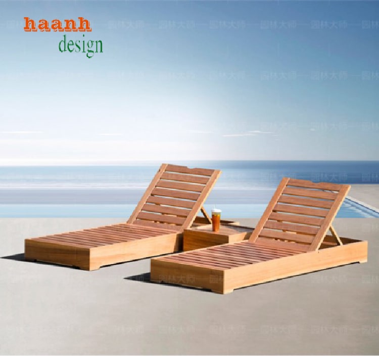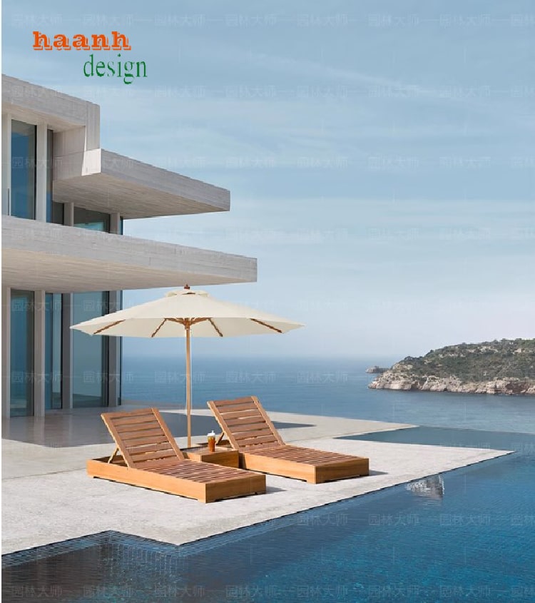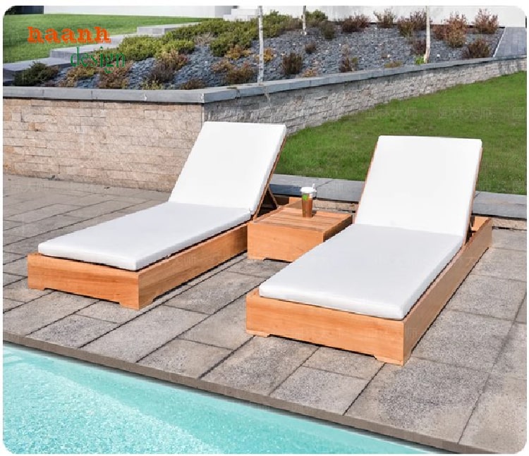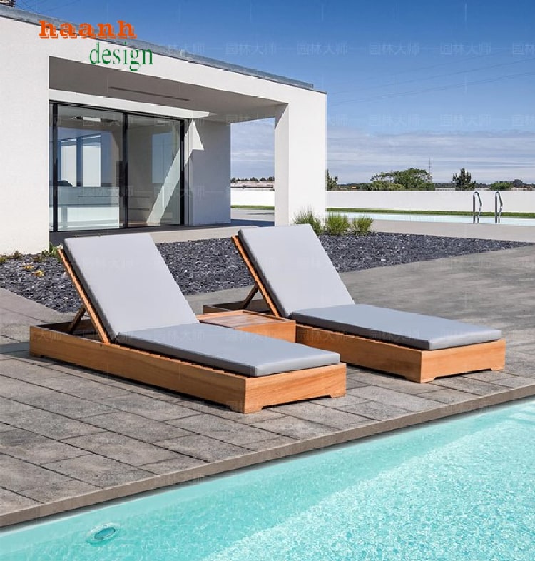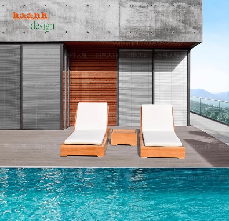 Không gian nghỉ dưỡng sang trọng với giường tắm nắng gỗ cao cấp