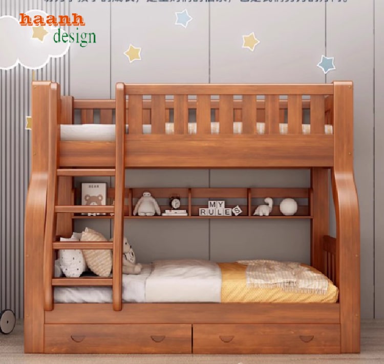 Giường tầng cho bé hiện đang là lựa chọn hàng đầu của nhiều bậc phụ huynh hiện đại bởi thiết kế tiện nghi, tiết kiệm diện tích và đảm bảo an toàn cho trẻ nhỏ. Với sự kết hợp giữa gỗ sồi tự nhiên và gỗ công nghiệp Flywood chất lượng cao, cùng lớp sơn nhập khẩu an toàn từ Mỹ, sản phẩm không chỉ đẹp về thẩm mỹ mà còn bền bỉ theo thời gian.
