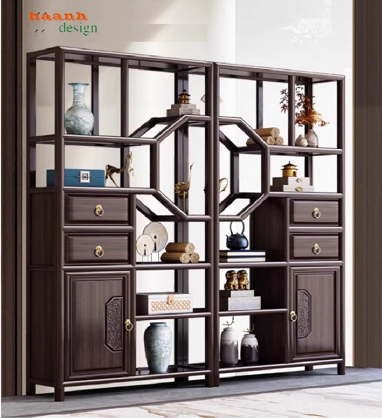 Trong thiết kế nội thất hiện đại, kệ gỗ trang trí không chỉ giữ vai trò làm nơi bày biện các món đồ yêu thích mà còn là yếu tố quan trọng nâng tầm giá trị thẩm mỹ cho không gian. Với sự kết hợp của gỗ sồi tự nhiên nhập khẩu Mỹ, sơn Inchem cao cấp cùng thiết kế rích rắc phong cách Trung Hoa, sản phẩm mang lại vẻ đẹp tinh tế, bền bỉ và đa công năng cho phòng khách, phòng trà hay phòng làm việc.