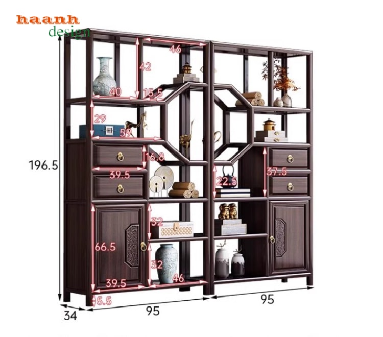 Kệ gỗ trang trí từ gỗ sồi tự nhiên nhập khẩu Mỹ, phủ sơn Inchem cao cấp giữ vân màu óc chó, mang thiết kế rích rắc phong cách trung quốc độc đáo. Sản phẩm vừa bền đẹp vừa tinh tế, phù hợp cho phòng khách, phòng trà, phòng làm việc. Đây là lựa chọn hoàn hảo để bày trí và nâng tầm không gian sống của bạn.
