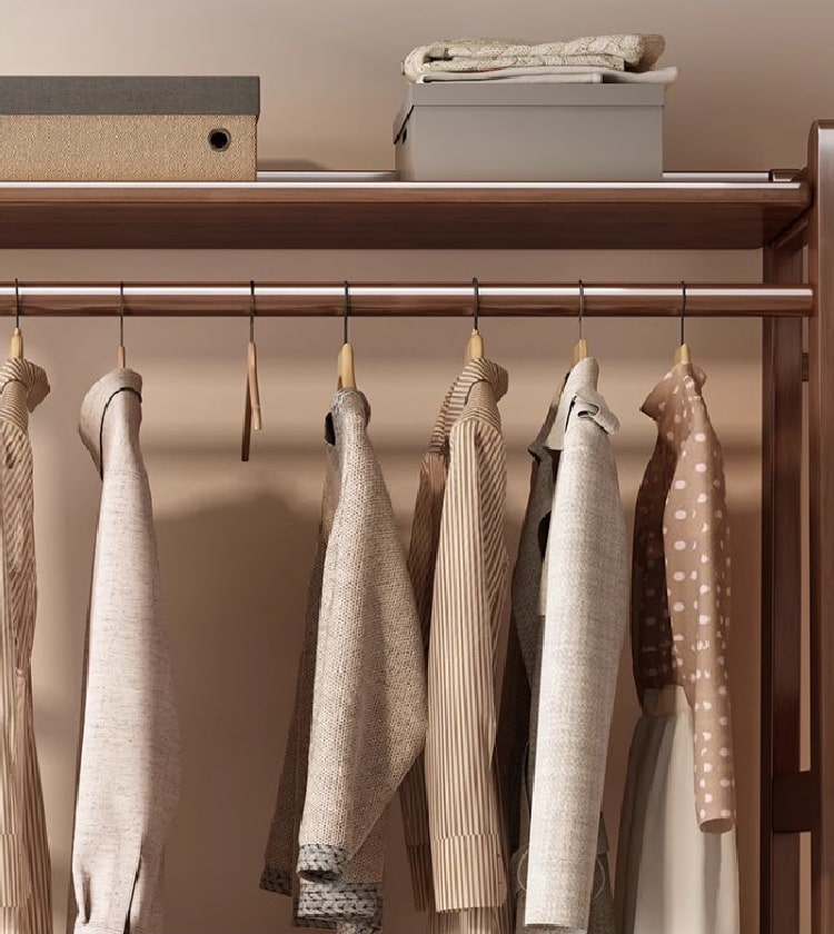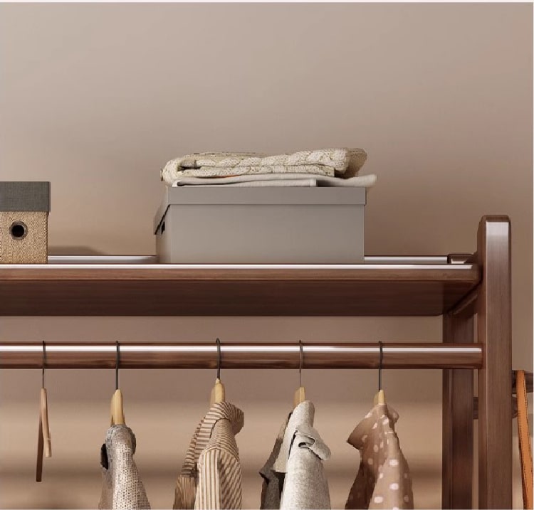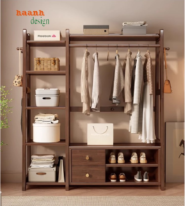 Kệ treo quần áo gỗ sồi mang lại không gian tiện ích và sang trọng.