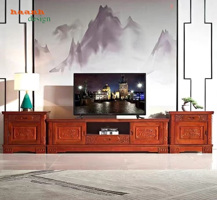 Kệ tivi gỗ hương đá là dòng sản phẩm nội thất cao cấp dành cho phòng khách với chất liệu gỗ hương đá nhập khẩu Lào, thiết kế giả cổ Trung Quốc và hoàn thiện bằng sơn PU Inchem của Mỹ. Sản phẩm có độ bền vượt thời gian, vẻ đẹp sang trọng, đường vân tự nhiên tinh tế và phụ kiện Cariny Thuỵ Sĩ cao cấp, phù hợp nhà phố – biệt thự.