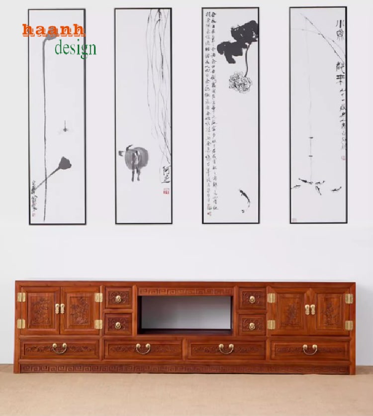 Không chỉ đơn thuần là một chiếc kệ tivi, sản phẩm còn là tác phẩm nghệ thuật với phong cách chạm khắc Á Đông cổ điển, tạo nên vẻ đẹp sâu lắng, trang nghiêm, phù hợp với các không gian nội thất truyền thống hoặc tân cổ điển.