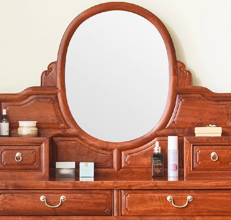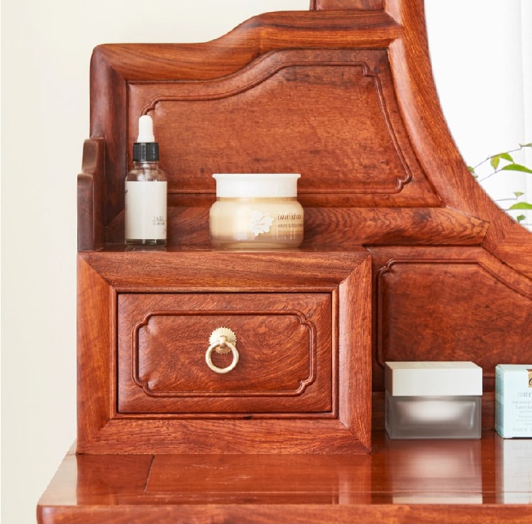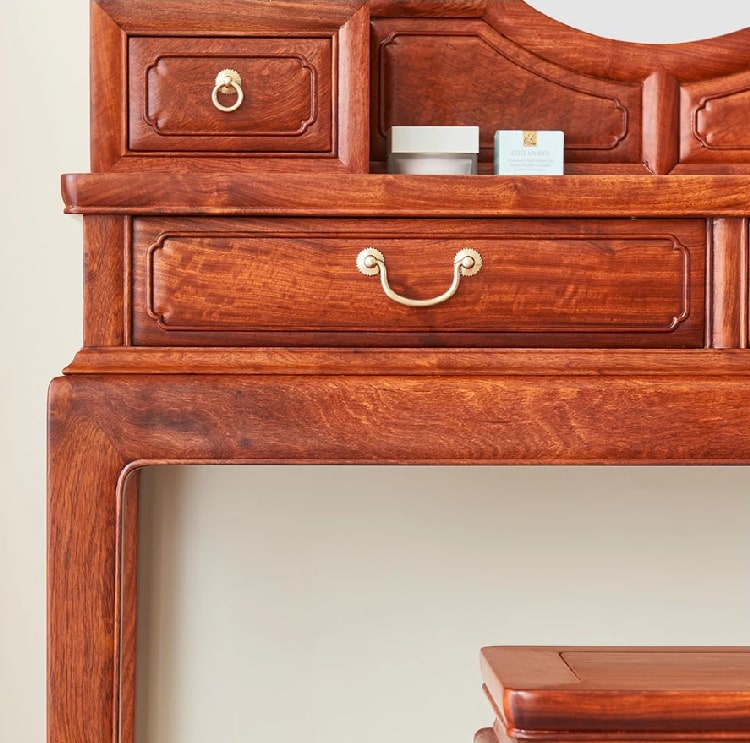 Gỗ gõ đỏ là một trong những loại gỗ có tuổi thọ cao, ít cong vênh, nứt nẻ. Vì vậy, khi chọn bàn phấn trang điểm gỗ tự nhiên, khách hàng có thể yên tâm sử dụng lâu dài.