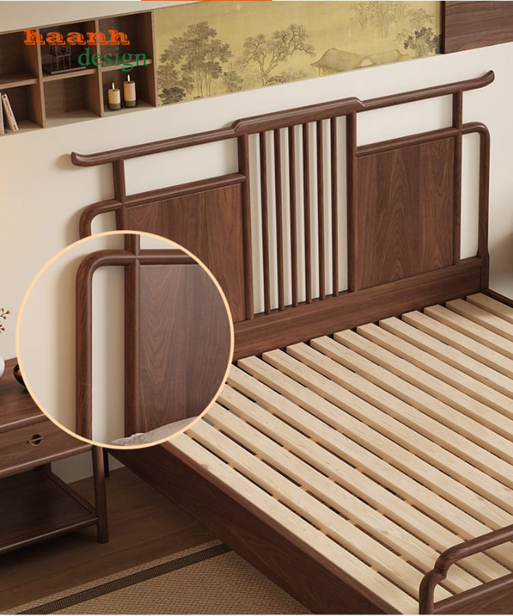 Trong đó, mẫu giường gỗ óc chó cao cấp theo phong cách Á Đông kết hợp hiện đại đang rất được ưa chuộng bởi: