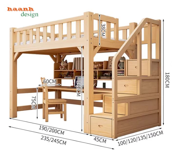 Sự kết hợp này giúp giường tầng gỗ cho bé vừa bền bỉ theo thời gian, vừa đảm bảo an toàn tuyệt đối cho trẻ nhỏ.