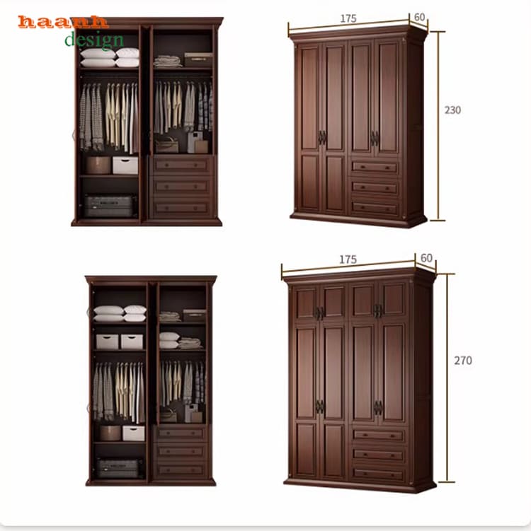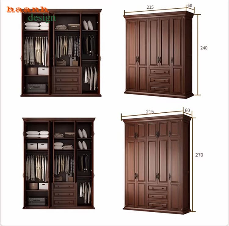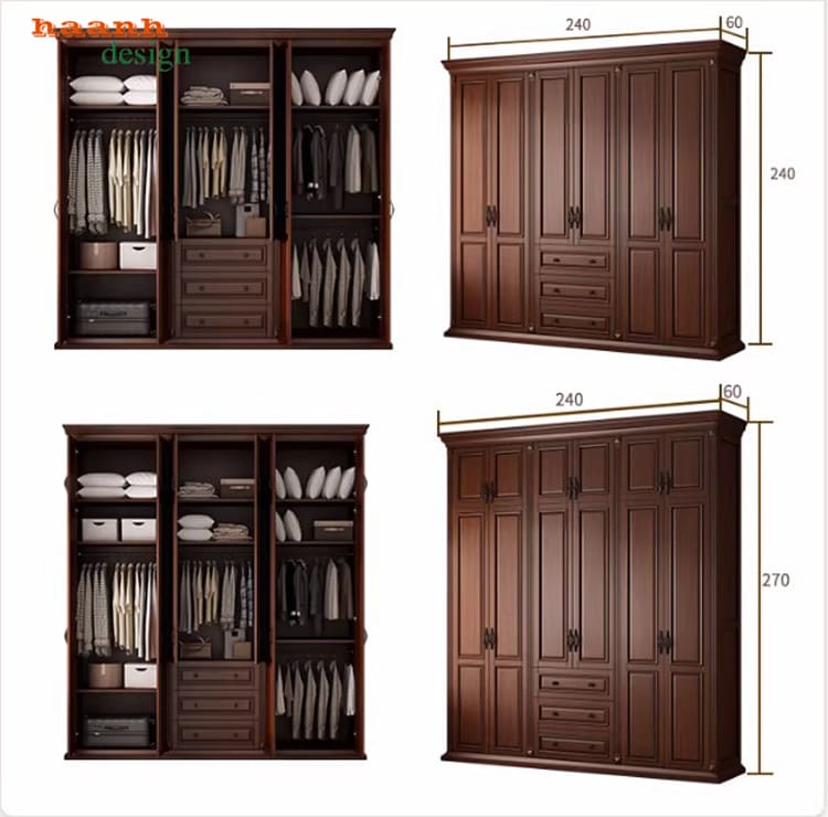 Cách bố trí này giúp tủ đựng quần áo đáp ứng nhu cầu sử dụng của cả gia đình.
