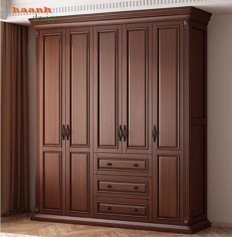 Gỗ được tẩm sấy kỹ lưỡng theo quy trình hiện đại, đảm bảo phù hợp với điều kiện khí hậu nóng ẩm tại Việt Nam. Vì vậy, mẫu tủ quần áo đẹp giữ được hình dáng ổn định và tuổi thọ lâu dài.