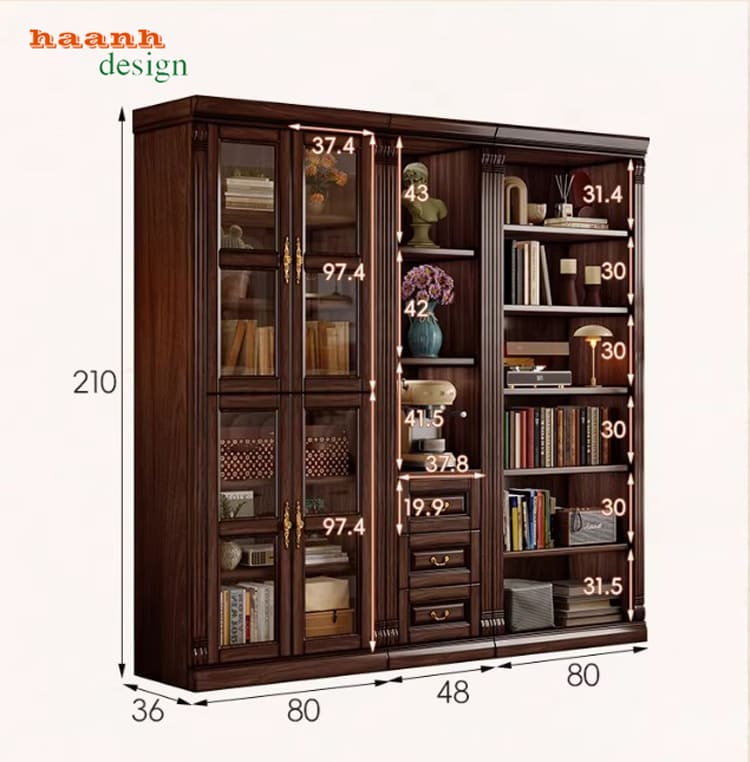 Chúng tôi nhận thiết kế kích thước theo không gian thực tế, đảm bảo mỗi tủ sách gỗ tự nhiên đều phù hợp tuyệt đối với diện tích và phong cách nội thất.