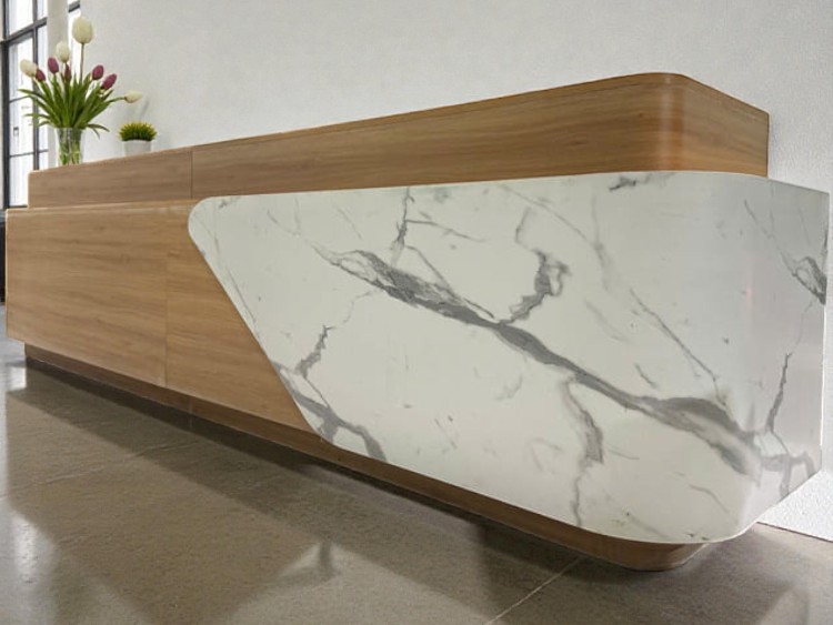 Đây là vật liệu lý tưởng để thi công quầy lễ tân cho các công trình thương mại.