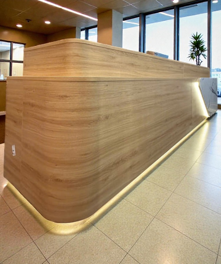 Bề mặt quầy lễ tân gỗ công nghiệp được phủ melamine/laminate cao cấp: