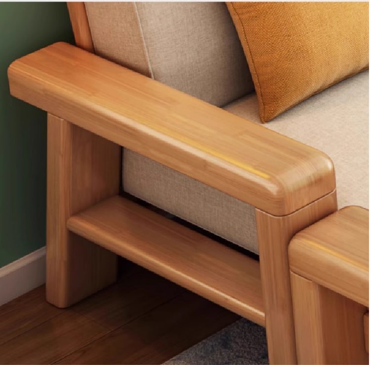 Cận cảnh phần khung sofa gỗ sồi Nga bền chắc, tinh tế trong từng chi tiết.
