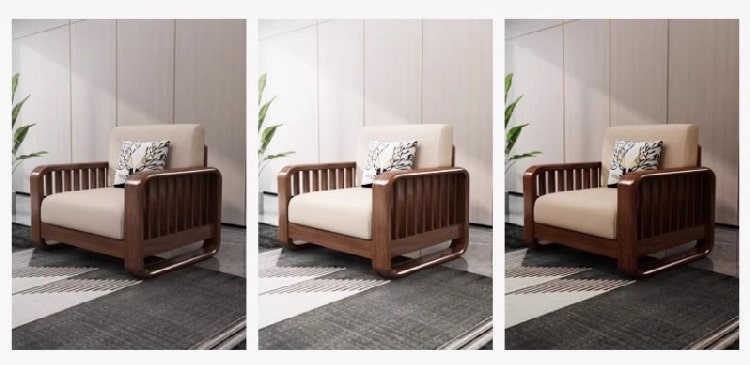 Một trong những yếu tố làm nên giá trị vượt trội của sofa phòng khách gỗ chính là gỗ sồi tự nhiên được nhập khẩu trực tiếp từ Mỹ hoặc Nga. Đây là loại gỗ có độ bền cao, khả năng chịu lực tốt, ít cong vênh và chống mối mọt vượt trội. Bề mặt gỗ có vân đẹp, tự nhiên, tạo nên vẻ ngoài mộc mạc nhưng không kém phần sang trọng.