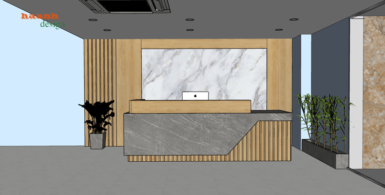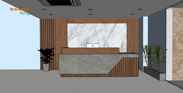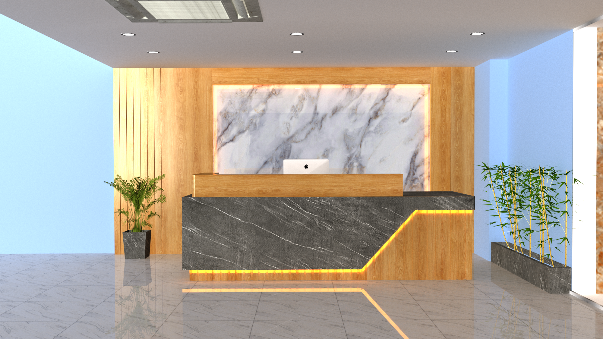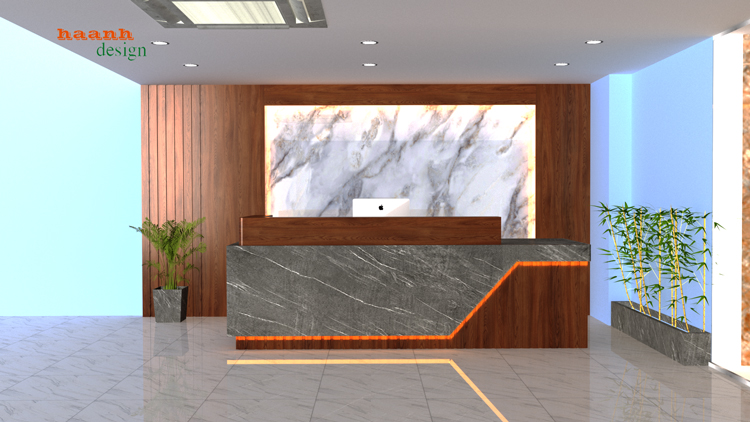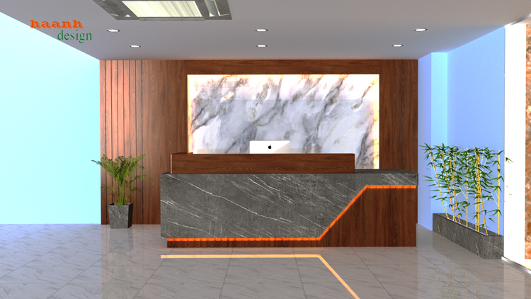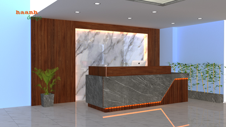 Tạo điểm nhấn: Sử dụng gỗ công nghiệp giả đá với màu sắc và vân đá nổi bật để tạo điểm nhấn cho quầy lễ tân. Bạn có thể chọn một loại đá nổi tiếng như marble Carrara, granite Black Galaxy, hoặc quartz Calacatta để tái tạo màu sắc và vân của gỗ.