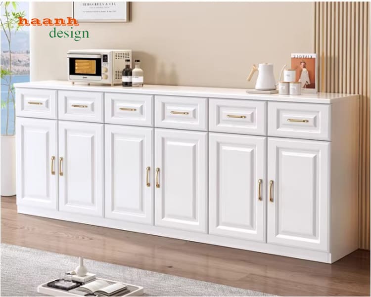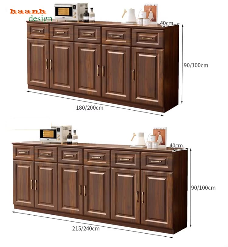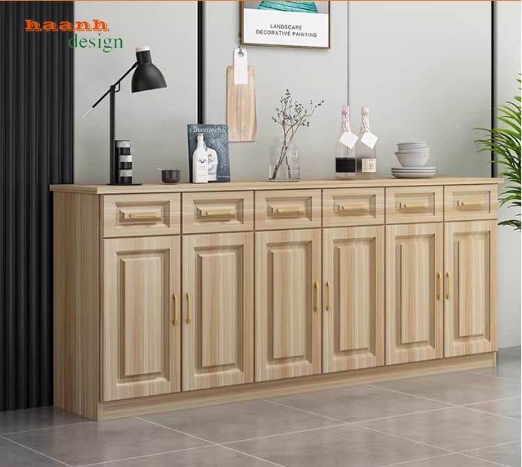 Thiết kế tủ gỗ đựng đồ nhà bếp nhiều ngăn tiện lợi giúp tối ưu không gian lưu trữ.