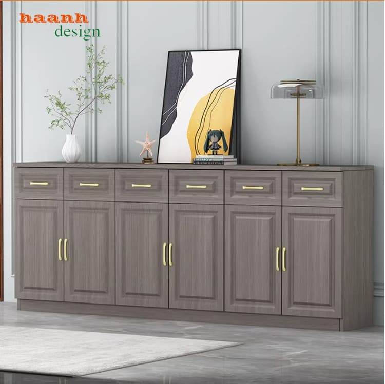 Phần thân tủ được sản xuất từ gỗ công nghiệp MDF chống ẩm cao cấp. Đây là vật liệu được sử dụng phổ biến trong nội thất hiện đại nhờ độ bền và tính ổn định cao.