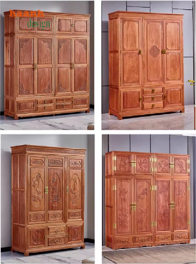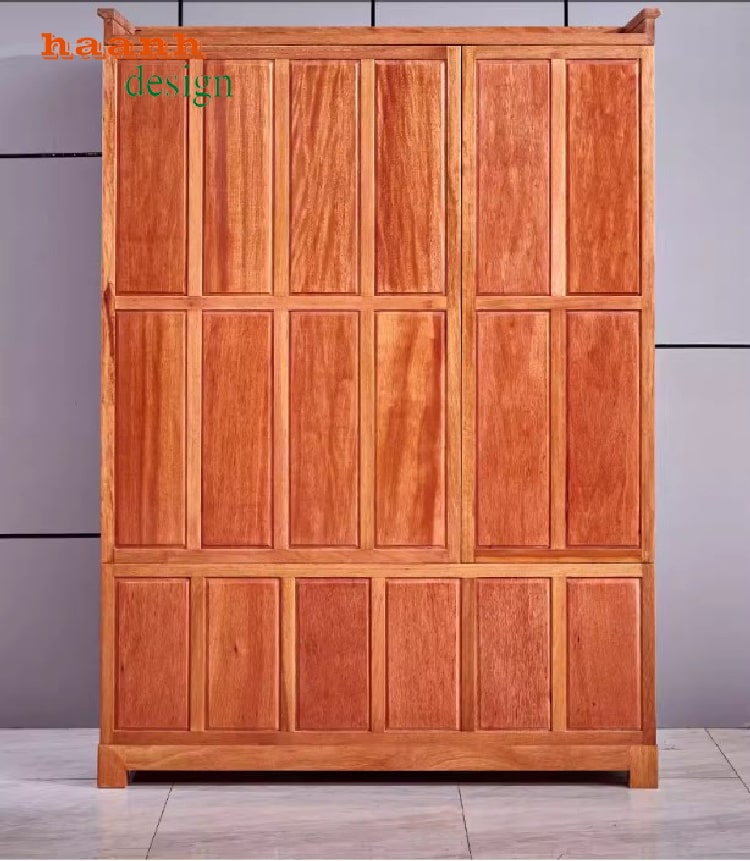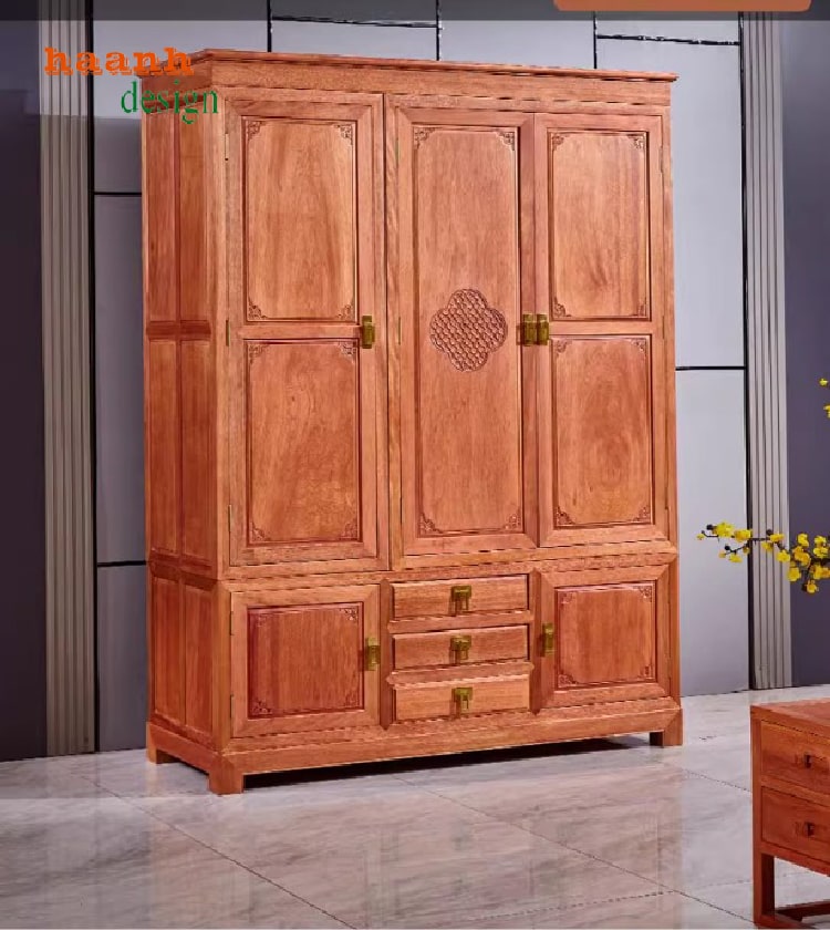 Tủ đựng quần áo bằng gỗ hương tự nhiên là lựa chọn lý tưởng cho những ai yêu thích vẻ đẹp truyền thống pha lẫn sự sang trọng và bền bỉ theo thời gian. Với thiết kế phong cách Á Đông, kết hợp phụ kiện truyền thống và lớp sơn PU Inchem Mỹ cao cấp, mẫu tủ này không chỉ là nơi lưu trữ quần áo mà còn là điểm nhấn đắt giá trong không gian phòng ngủ.