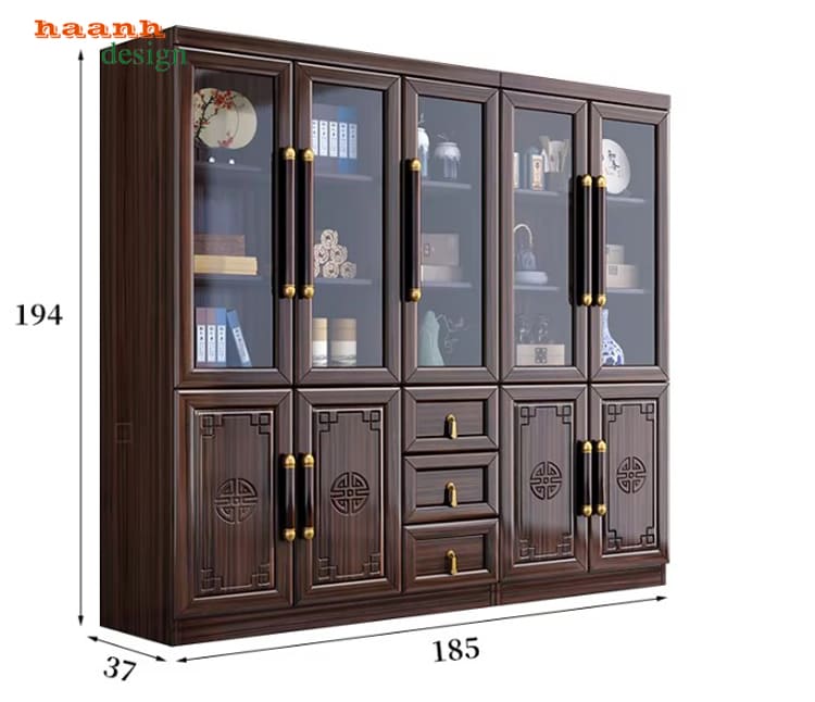 Với phong cách Á Đông cánh chạm tinh xảo, mẫu tủ đựng sách bằng gỗ này mang đến sự kết hợp hài hòa giữa truyền thống và hiện đại.
